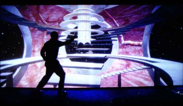 Overview Orbital is a sci-fi space environment developed for Mechdyne Corporation. The image above shows a user navigating the environment at the Thomson Consumer Electronics design center. |